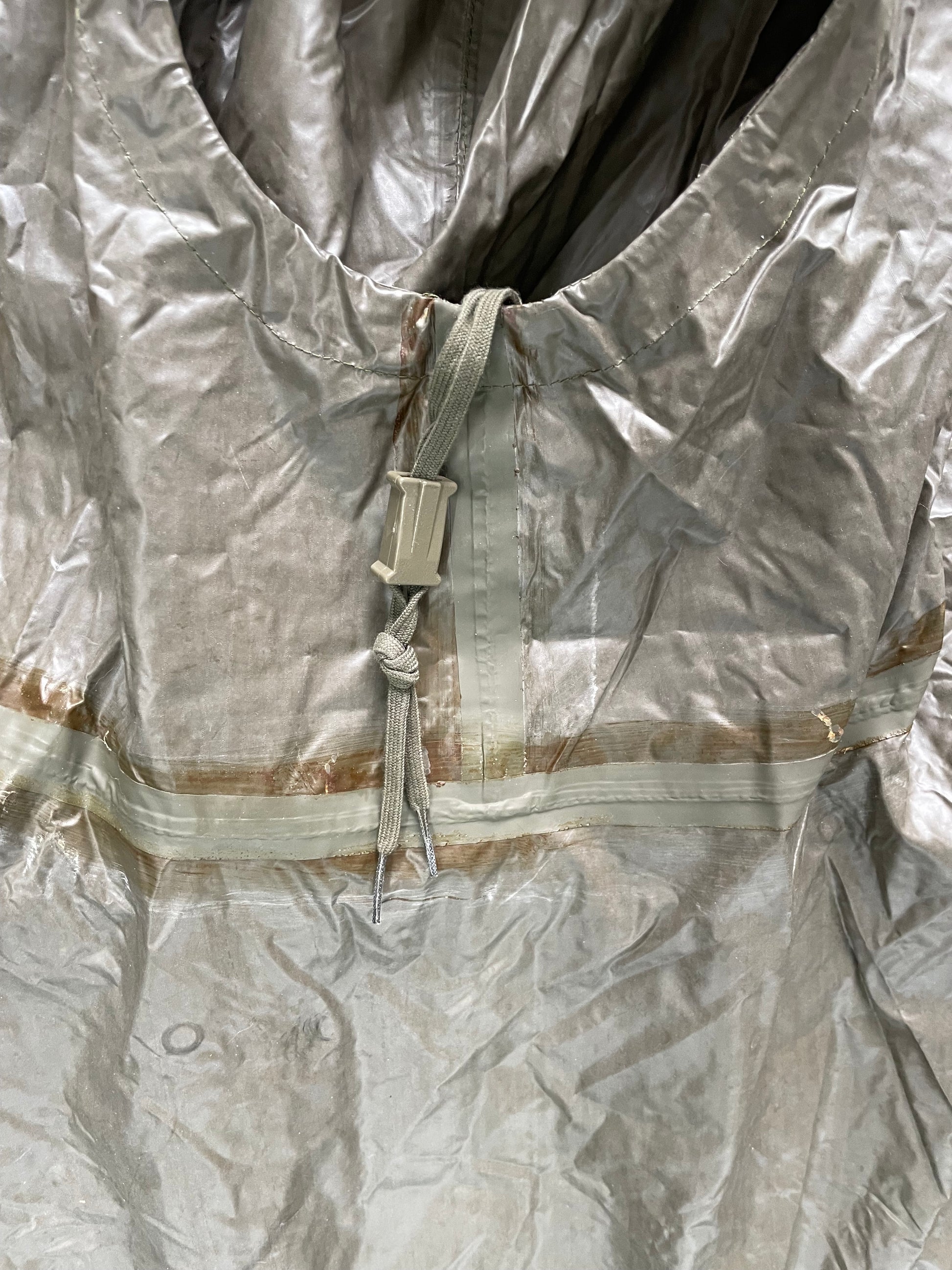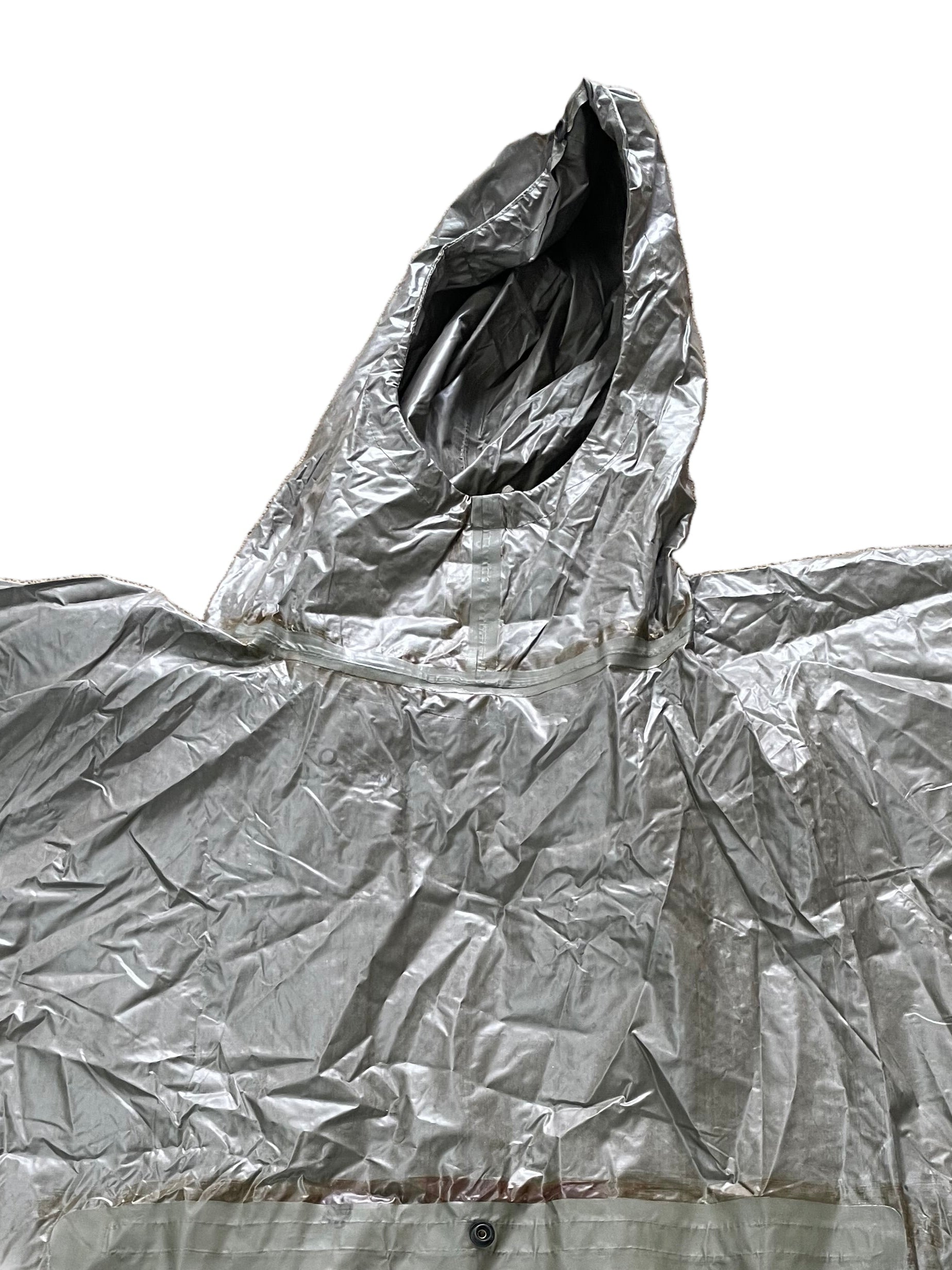 Simple and effective the waterproof poncho saves the day! Original military surplus, very good used condition. Don't leave home without one!