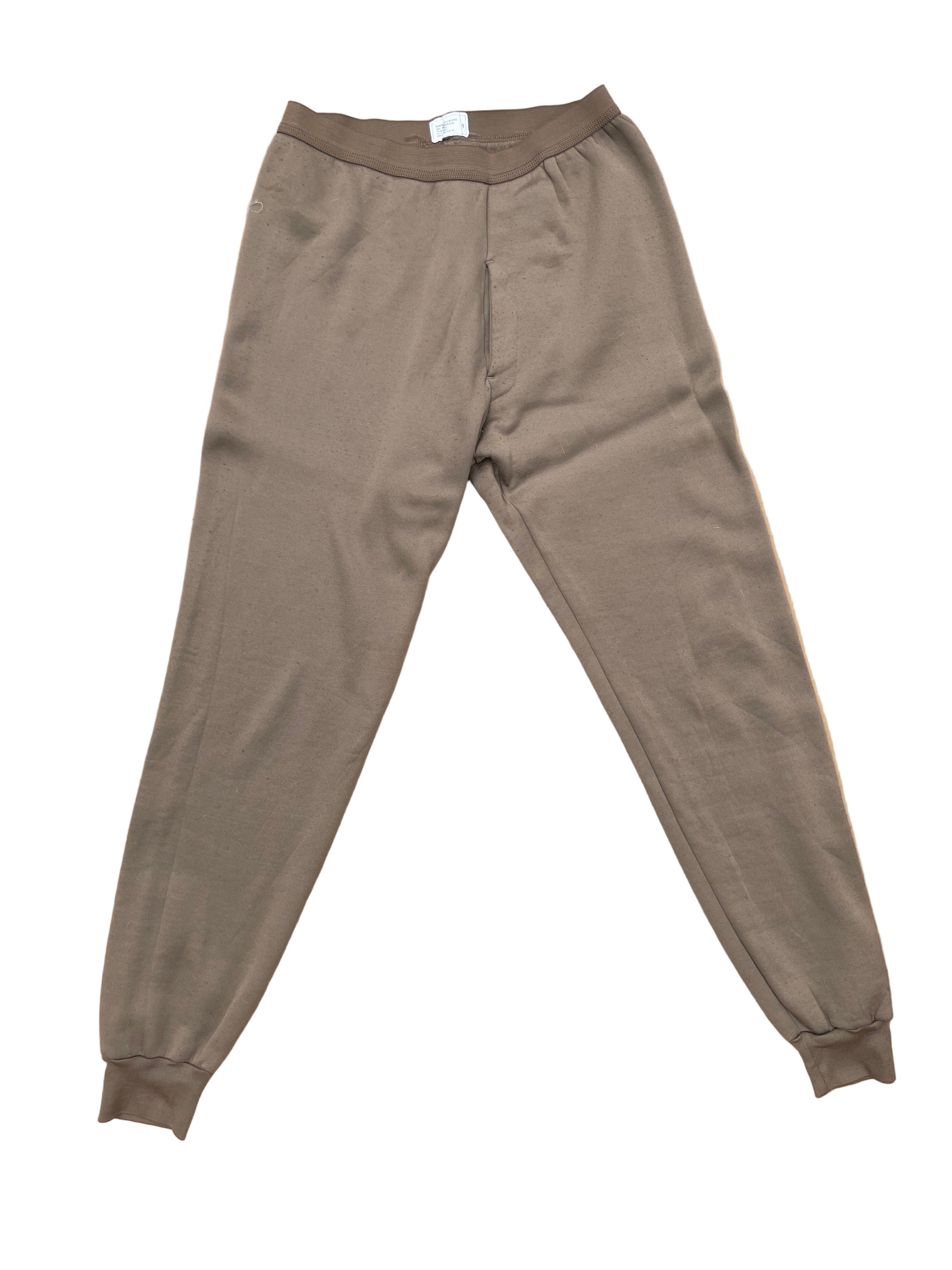 100% polypropylene bottoms. These are in good, used condition. Great cold weather base layer.