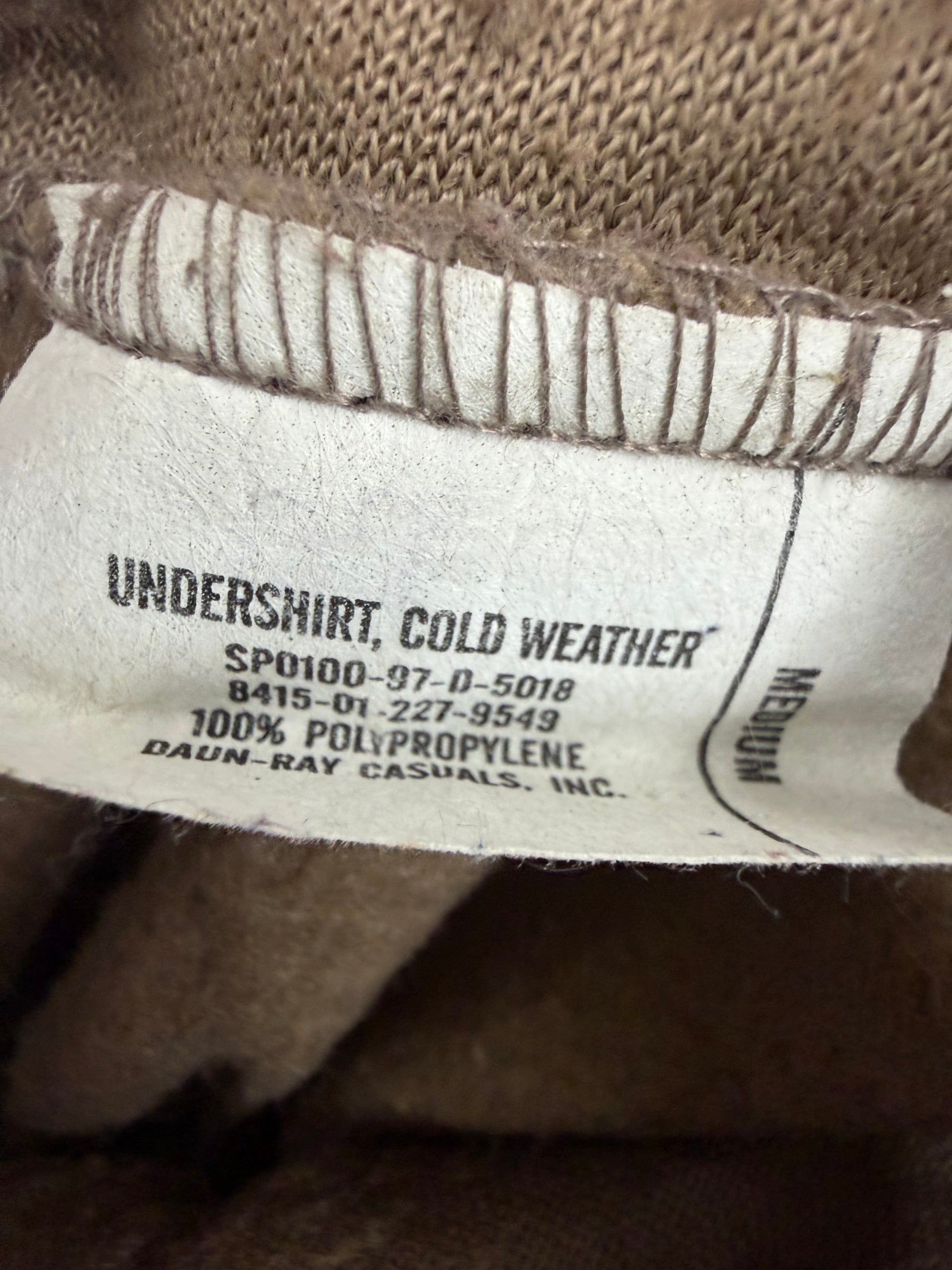 100% Polypropylene 1/4 zip undershirt. Great base layer for cold weather gear. Issued condition.